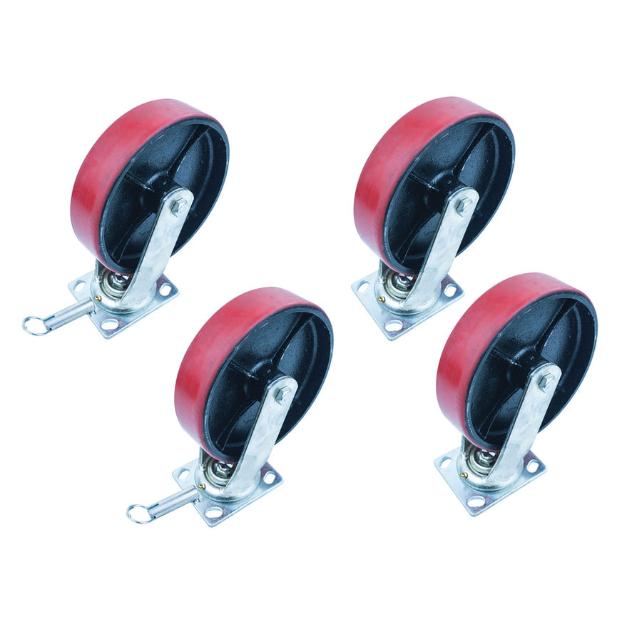8" Flat Polyurethane Caster Kit, Red (Swivel Locks)